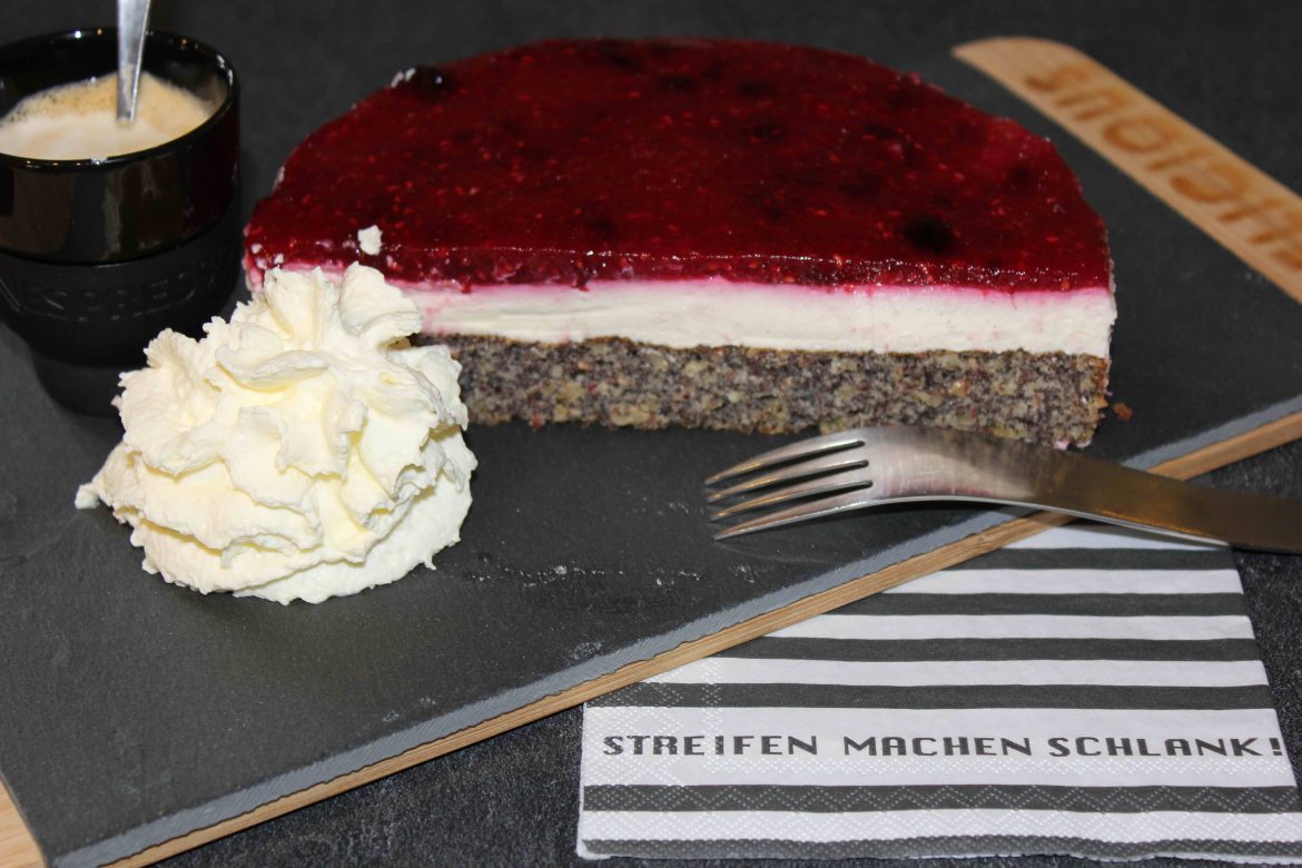 Die Topfenmasse auf dem kalten Tortenboden verteilen und 2-3 Stunden kalt stellen. Die Fülle sollte nun fest sein.