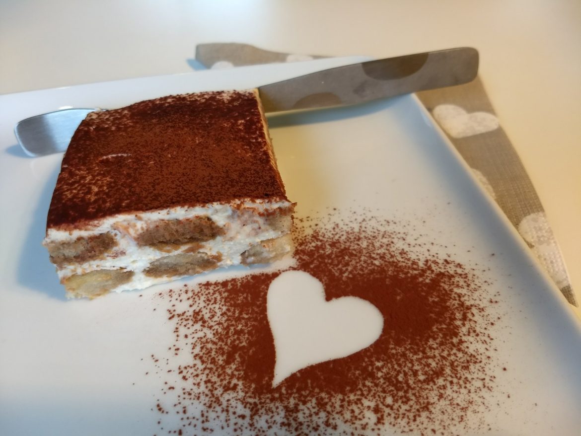 1 P Biskotten Als erstes mache ich einen starken Kaffee und lass ihn auskühlen und gib den Rum dazu! Mascarpone, Zucker, Vanillezucker, Eierlikör glatt rühren – mit dem Mixer! Dann die nicht zu fest geschlagene Sahne vorsichtig unterheben. Dann schichtweise Mascarpone, dann in Kaffeerum getränkte Biskotten in eine Form einfüllen. Solange bis die Creme und Biskotten aufgebraucht sind. Mit Creme abschließen und mit Kakaopulver bestreuen. Schnell gezaubert und schmeckt jedem …… glaube ich zumindest!! 😉 Gutes Gelingen! www.dahoamschmecktsambesten.at