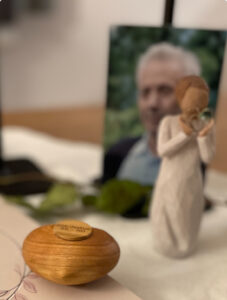 Verewigt in einem kleinen Holzherz bist du immer in unserem Haus ganz nahe bei uns.